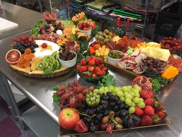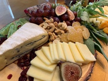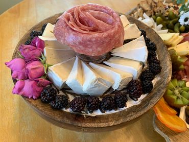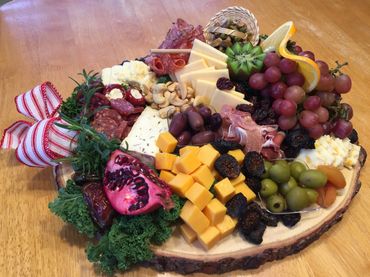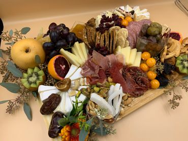 A Food & Flair Designs specialty! Standard boards include artfully displayed artisan cheeses, cured meats, fresh and dried fruit, nuts, olives and crackers.